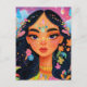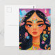 Mande um toque de magia para alguém especial com este cartão postal místico. Apresentando um retrato encantado de uma menina adornada com flores vibrantes e cristais brilhantes, essa carta é perfeita para os entusiastas do pós-cruzamento. Os detalhes intrincados e cores vívidas trarão alegria e maravilha para a caixa de correio do destinatário. Ideal para compartilhar mensagens de amor, amizade ou simplesmente espalhar positividade pelo mundo