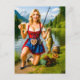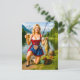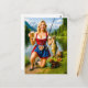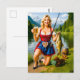 Cartão Postal Garota engraçada pescando com traje tradicional bá