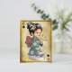 Cartão Postal Garota japonesa em quimono segurando fã