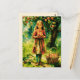 Cartaz em um retrato em estilo aquoso de uma jovem em um vestido vermelho em um pomar, segurando uma cesta de maçãs. Ao redor dela estão maçãs maduras no chão e penduradas em árvores. A cena evoca calor, inocência e a beleza da natureza.