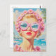 Cartão Postal Garota Retro da Praia com Óculos de Sol Florais