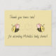 Uma adorável menina gêmea bebe obrigado você. Este cartão-postal mostra duas abelhas bebê em azul com espaço para dizer uma obrigado rápida nas costas. Copyright da Menagerie da Night Owl, 2018.