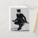 Essa impressionante representação gráfica captura a Mulher-Gato em seu elemento, mostrando sua agilidade e furtividade enquanto se prepara para a ação. A ilustração é feita em preto e branco ousados, enfatizando a elegância de seu traje e o movimento dinâmico de sua pose. A Mulher-Gato é retratada agachada com um chicote enrolado ao seu lado, seu olhar focado e calculista. O efeito de tinta respingada ao seu redor adiciona um senso de urgência e ao ambiente caótico em que ela prospera. Essa obra de arte não apenas destaca o status icônico da Mulher-Gato como uma ladra habilidosa e anti-heroína, mas também sua complexa relação com Gotham e seu cavaleiro das trevas. É uma representação poderosa de uma das aliadas e adversárias mais enigmáticas e formidáveis do Batman.