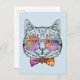Este design apresenta um gato fofo e legal usando óculos de arco-íris e uma gravata borboleta com bolinhas.