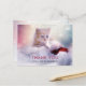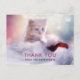 Um cartão postal de agradecimento de Natal com uma fotografia de um gatinho ruivo sentado em um chapéu de Papai Noel branco e vermelho macio. Fundo desfocado com luzes cintilantes. Personalize a frente e também personalize a mensagem no verso.