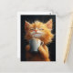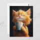 Um adorável gato gengibre feliz com uma caneca de arte de fantasia de café