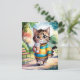 Cartão Postal Gato Adorável Caminhando no Parque com Café