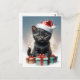Cartão Postal gato bonito com a ilustração do chapéu de Santa