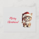 Um gatinho bonitinho com chapéu de Natal está olhando para você. Este é o cartão postal perfeito para as pessoas adoráveis de gatos para as quais você quer enviar Cartões de natal. Você pode personalizar facilmente o cartão substituindo a imagem, assim como o texto pela imagem e palavras.