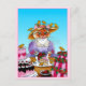 Cartão Postal Gato bonito, pássaro, bolo de aniversário