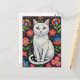 Cartão Postal Gato Branco em Flores de Arte Folclóricas