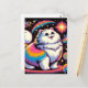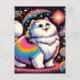 Cartão Postal Gato Branco Fluffy no Espaço