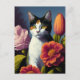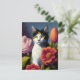 Cartão Postal gato com flores