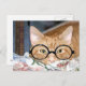 Cartão Postal Gato com óculos e livros