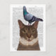 Cartão Postal Gato com Pombo na Cabeça