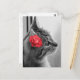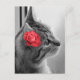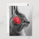 Este cartão-postal divertido para os amantes de gatos mostra uma fotografia de um gato com uma rosa no seu ouvido. Ela está olhando longamente para fora da janela como se estivesse toda vestida de nada para ir!
