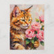 Cartão Postal Gato com Rosas
