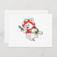 Cartão Postal Gato como colhedor de cogumelos com cogumelo