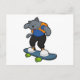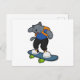 Cartão Postal Gato como Skateboard com Skate