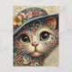 Cartão Postal Gato de Abstrato com Gato com Chapéu