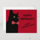 Cartão Postal Gato de Aniversário Feliz Preto com Arco Vermelho