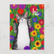 Cartão Postal Gato de Arte Folclórica Bonita dizendo Hi entre Fl