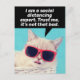 Distância social? Quem teria pensado? Este gato legal, vestindo óculos de sol, diz que ela é especialista em distanciamento social. Ela também diz, "Acredite, não é tão ruim assim." As costas têm sentimentos mais encorajadores (que você pode mudar se quiser). Durante estes tempos difíceis, todos nós poderíamos usar risada e encorajamento. Mande-me buscar aos amigos e à família para iluminar o dia deles.