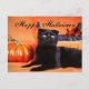 Adorável gatinho preto sólido da raça Scottish Fold desejando um Feliz Halloween