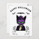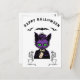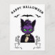 Cartão Postal Gato de Halloween Roxo com Bats e Skeletons