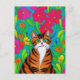 Cartão Postal Gato de Laranja Esbranquiçado com Flores Rosa