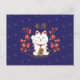 Cartão Postal Gato de Maneki-neko com sorte, kanji
