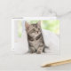 Cartão de animal mostrando um gatinho americano de taquinho sob um cobertor.