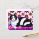 Cartão Postal Gato de Tuxedo preto e branco em uma almofada