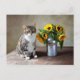 Cartão Postal Gato e Girassóis