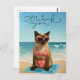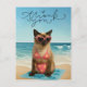 Envie seus agradecimentos com um toque divertido de charme praiano! Este cartão de agradecimento apresenta um adorável gato siamês relaxando na praia, absorvendo o sol com óculos de sol superdimensionados e uma bebida refrescante na pata. Rodeado por elementos praianos como conchas, guarda-sóis e palmeiras, este cartão irradia uma vibração divertida e tropical. Perfeito para expressar sua gratidão com estilo, seja para um presente de verão, uma festa na praia ou apenas para alegrar o dia de alguém com uma nota fofa e atenciosa.