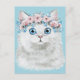 Este design apresenta um gatinho branco bonito vestindo um halo de flor azul e rosa.