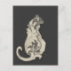 Gato ilustre elegante de cinza envolto em um design de rolagem ornamental Art Nouveau, curvando ao redor do corpo. Arte original de Margaret Loftin Whiting.