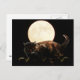 Cartão Postal Gato Lua em uma cerca com lua cheia