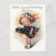 Mande a alguém um cartão de aniversário único este ano! Este cartão de aniversário de vintage retrata uma garotinha bonitinha com um gato preto.