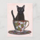 Cartão Postal Gato Negro em Teacup