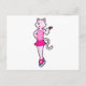 Cartão Postal Gato no patins no gelo com flor