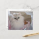 Cartão Postal Gato Persa Branco numa Cadeira Rosa