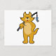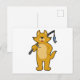 Cartão Postal Gato pescando com vara de pescar & Peixe