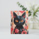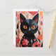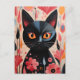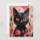 Cartão Postal Gato Preto Adorável Com Flores Rosa
