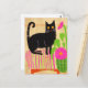 Cartão Postal Gato Preto Com Flores Rosa