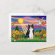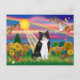 Cartão Postal Gato Preto e Branco - Sol de outono