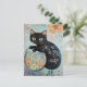 Cartão Postal Gato Preto Floral com Peixe Dourado