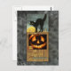 Cartão Postal Gato preto numa cerca de madeira com abóbora