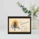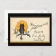 Carto de Halloween vintage e fofo, apresenta um gato preto sentado em um galho de árvore dando uma saudação de Halloween.