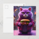 Cartão Postal Gato Puro Engraçado com Cheeseburger